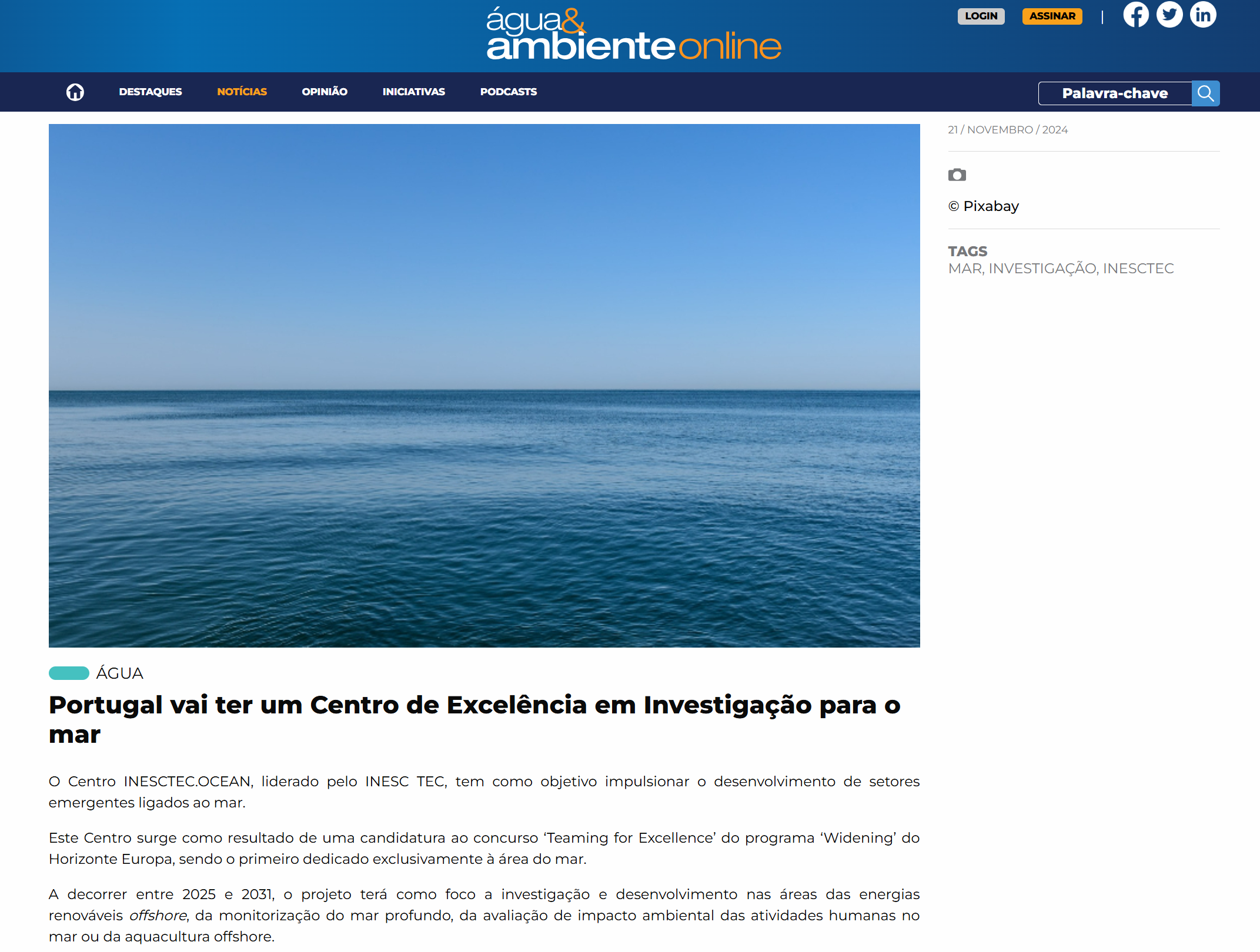 INESC TEC anuncia primeiro centro de excelência para investigação e engenharia no mar