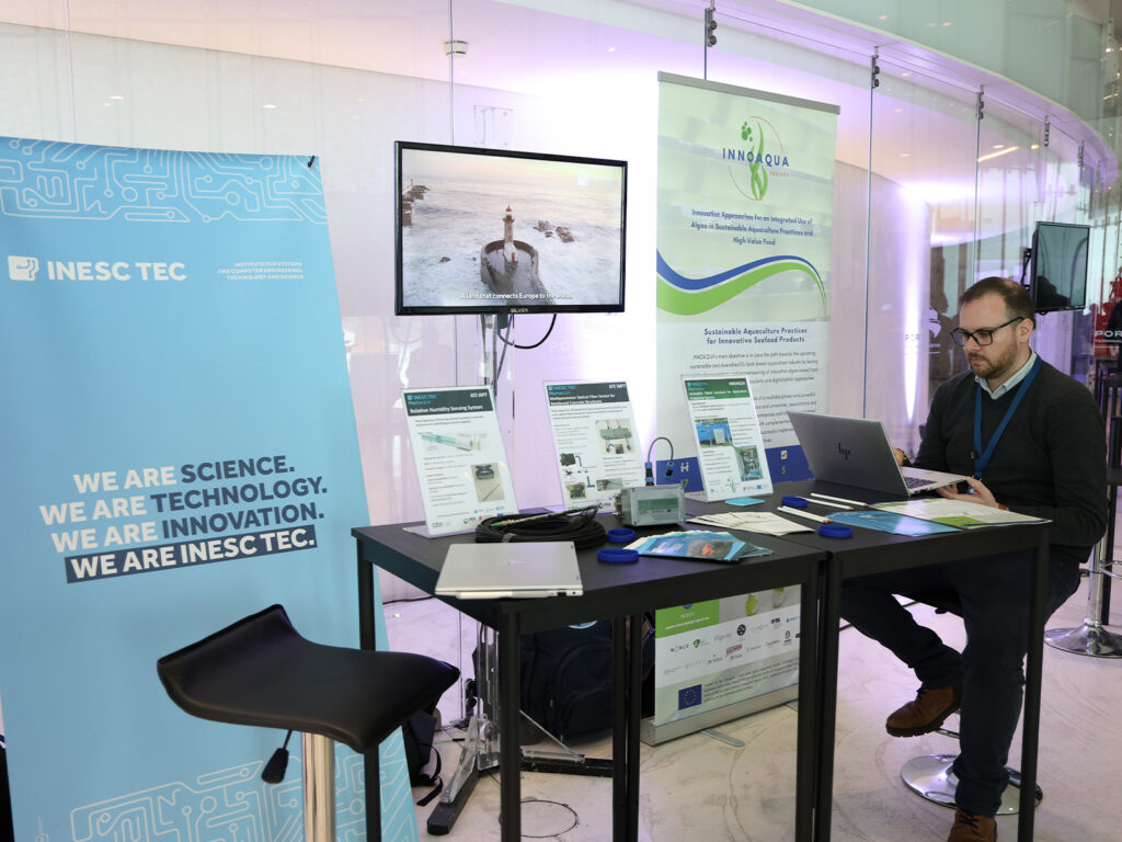 Throughout the two days of Business2Sea, INESC TEC’s latest developments for the ocean were also showcased in the exhibition area. Researchers Luís Coelho and João Mendes represented the Institute with demonstrations related to the Energy Transition Alliance and the INNOAQUA project, which focuses on developing an innovative approach to the integrated use of algae in sustainable aquaculture practices and high-value food applications.