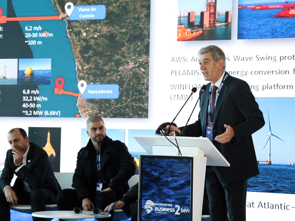 The INESC TEC researcher presented the BLUE-X platform on the main stage of Business2Sea. This European project – with INESC TEC as partner – is described as an “innovative ocean observation solution to optimise processes associated with renewable energy”. From installation to decommissioning, BLUE-X “covers the entire life cycle of offshore renewable energy projects”.
