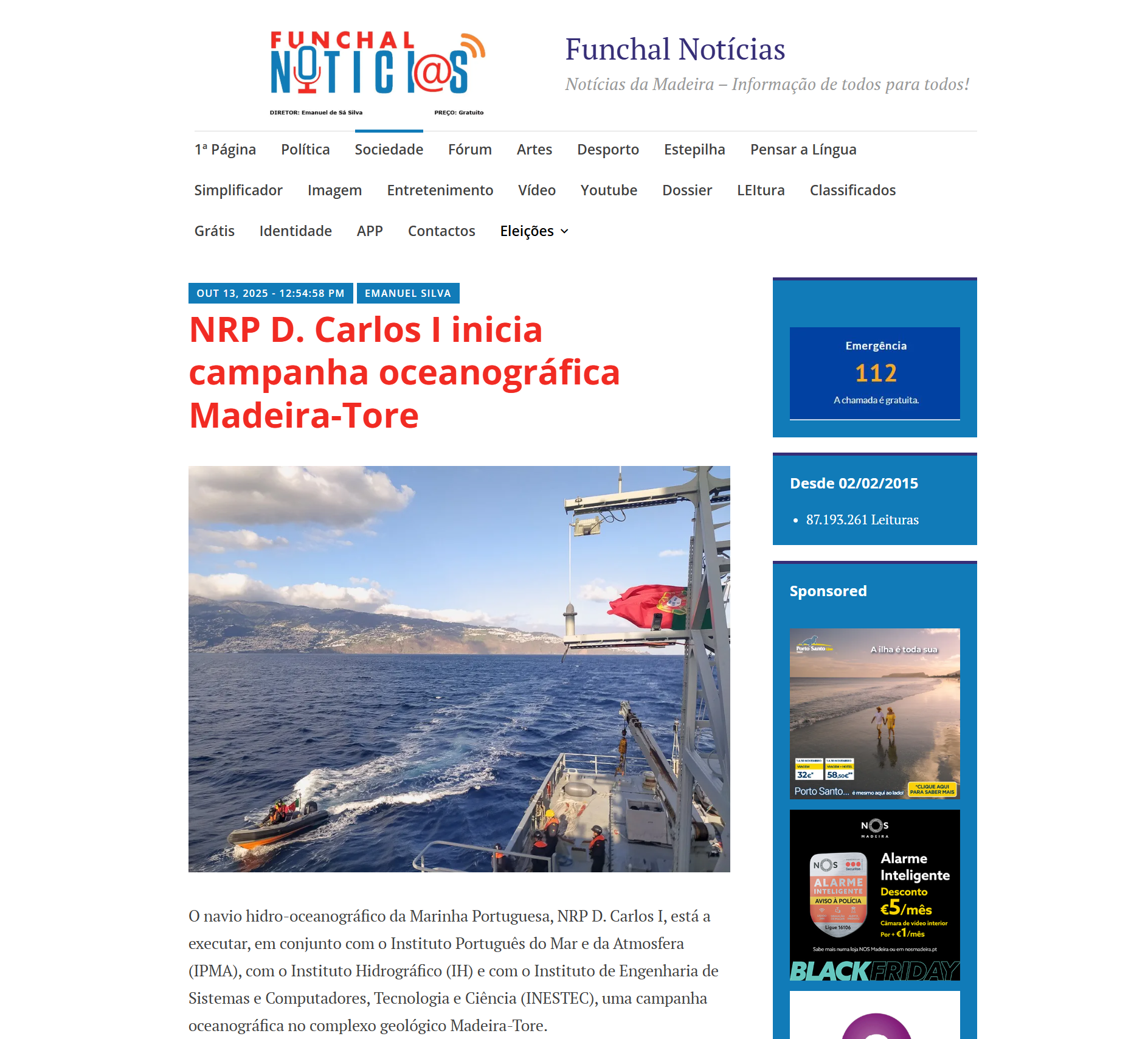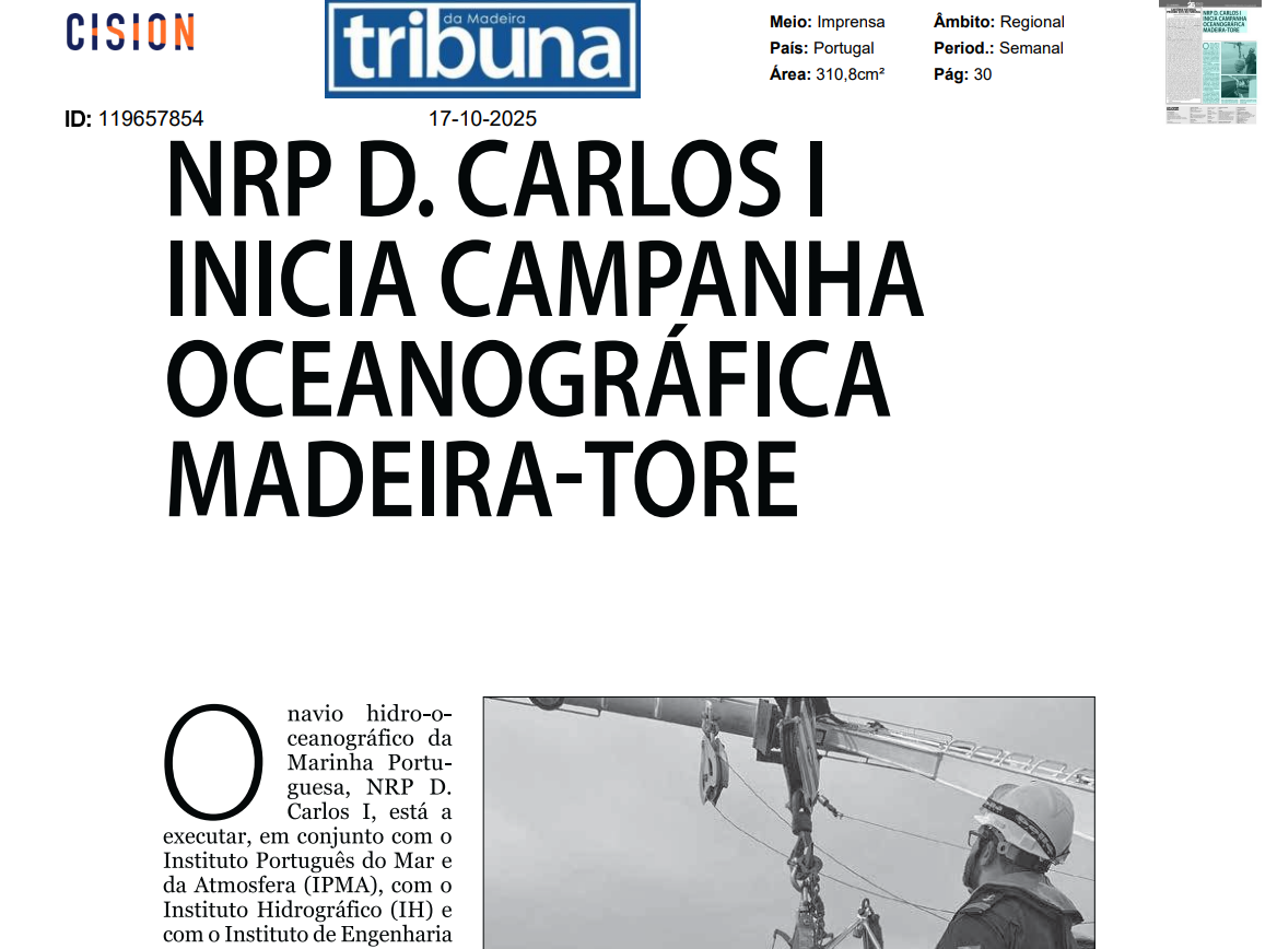 NRP D. Carlos I inicia campanha oceanográfica Madeira-Tore